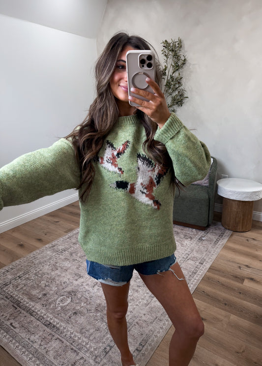 Flying mallard Knit Sweater - spring green