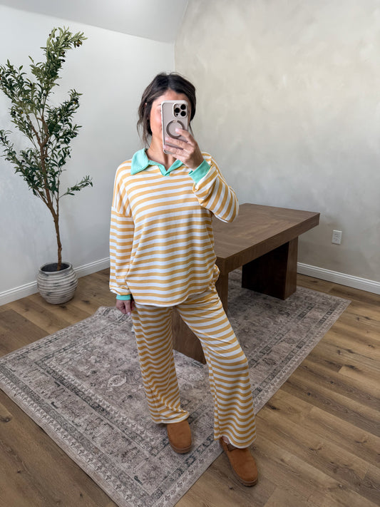 Color Pop Striped Lounge Set-Yellow/Mint
