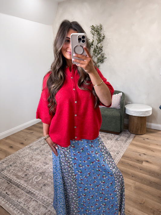 Velvet Comfort Cardigan - red