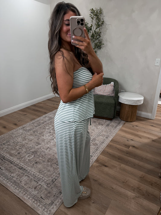 Breezy Belle Striped peplum Lounge Set - sage green