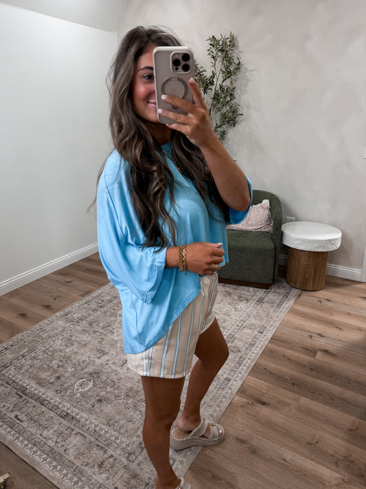 Elaine Relaxed Batwing Top - blue