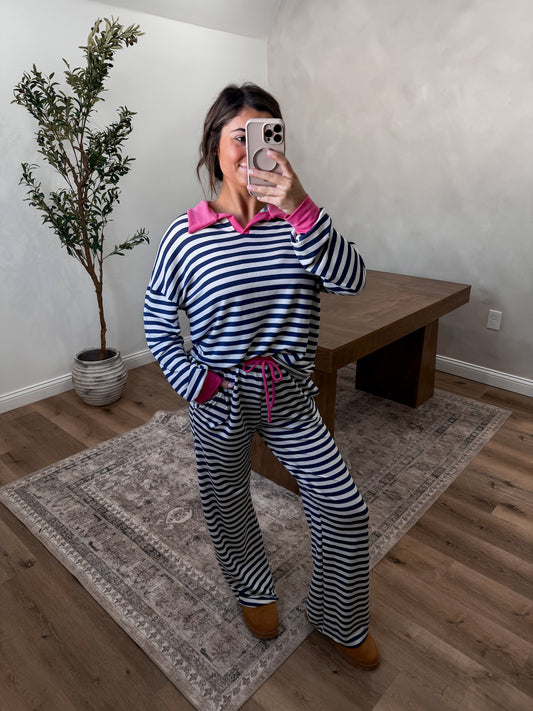 Color Pop Striped Lounge Set- Navy/Pink