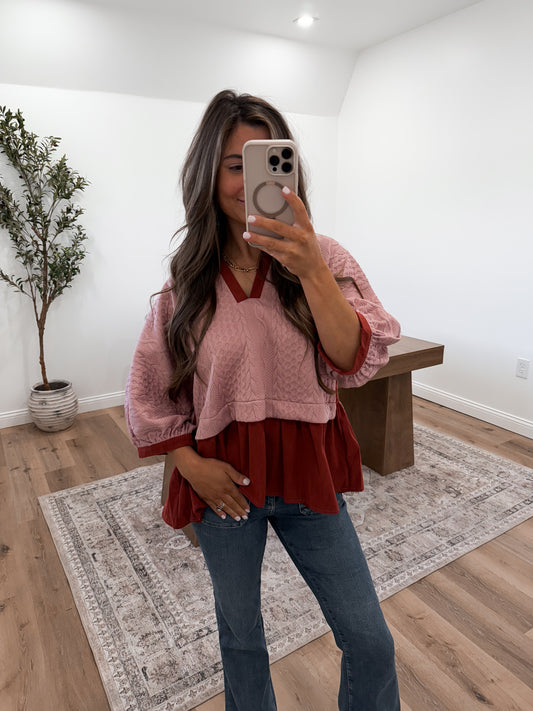 Mauve Knit Peplum Blouse