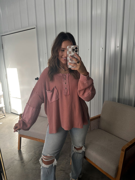 Mayla Mixed Terry Knit Henley - 2 colors!