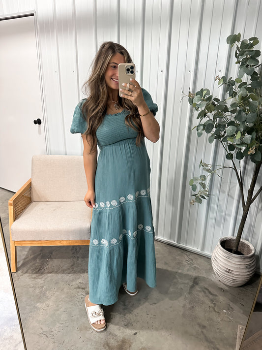 Sold outAspyn Teal Embroidered Maxi Dress