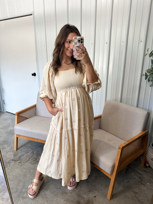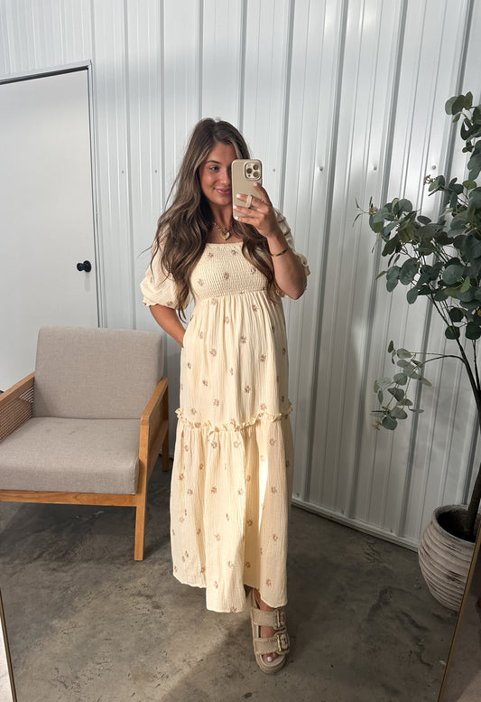 Aurora Gauze Maxi Dress - Beige Floral
