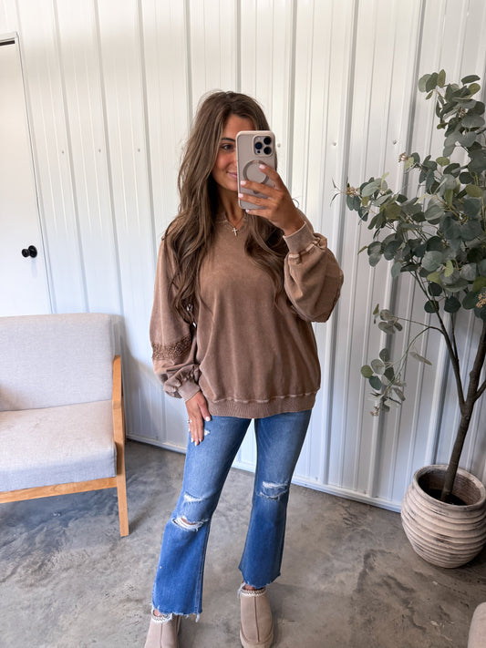 Mixed media Waffle Contrast top- Mocha *restocks!
