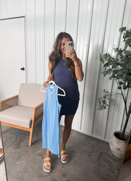 Mylie Ribbed Mini Dress - Dusty Indigo