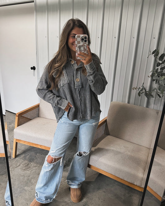 Oaks thermal gauze button up - charcoal