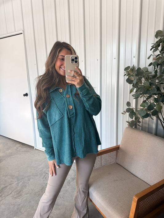 Oaks Thermal Gauze Pullover - Turquoise