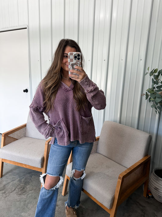 Sold outNova Rib Knit Pullover- Plum