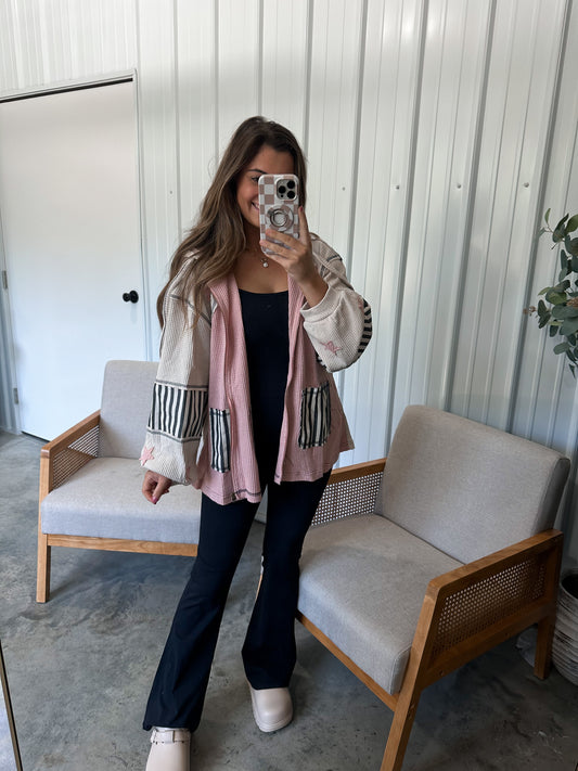Balloon Sleeve Patch Detail Hooded Zip Up Top
