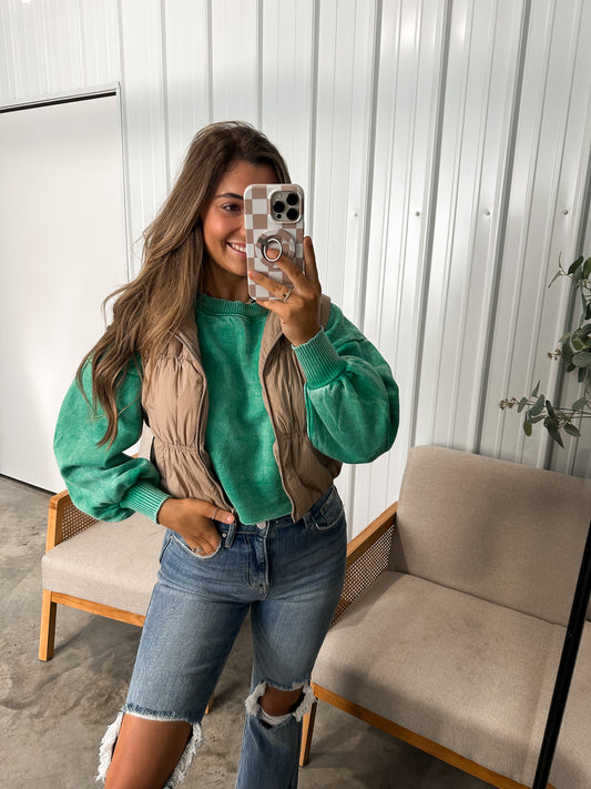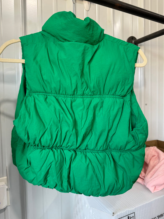 Ruched Cropped Puffer Vest- Green **lightly loved**