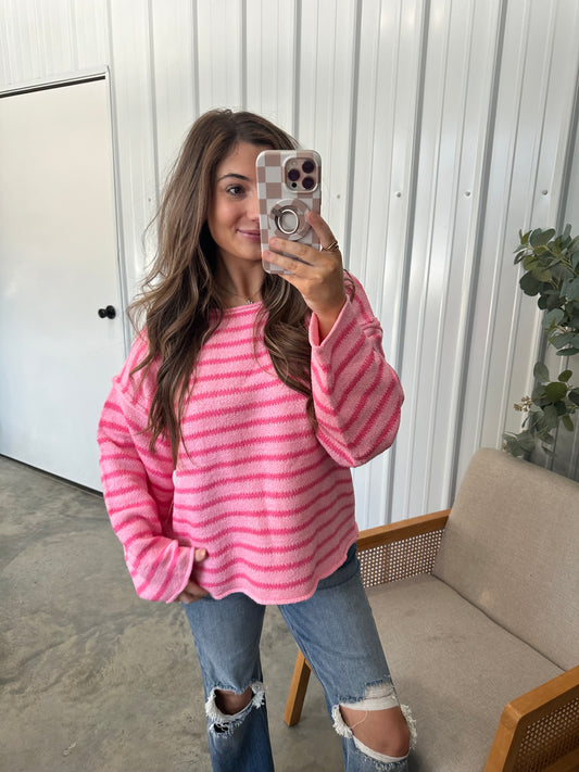 Stripe Raw Edge Drop Shoulder Knit Cardigan- Dark Brown