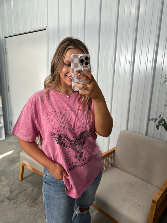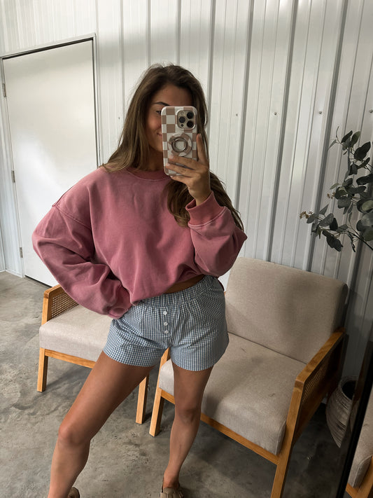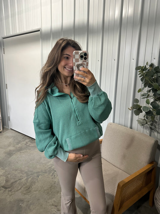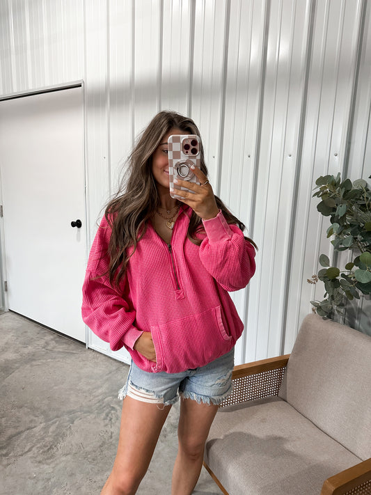 Vintage Washed Waffle Half Zip Hoodie- fuchsia