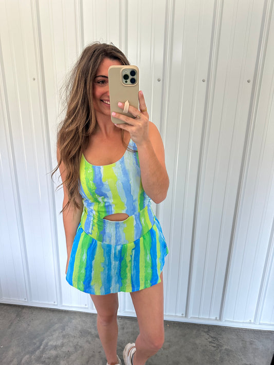 Whitney watercolor Print Sporty Skort Romper
