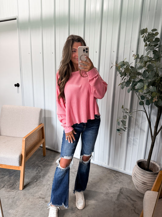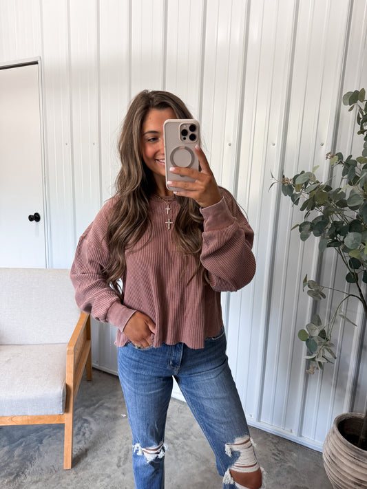 Whitney Washed Waffle Pullover- Restock!