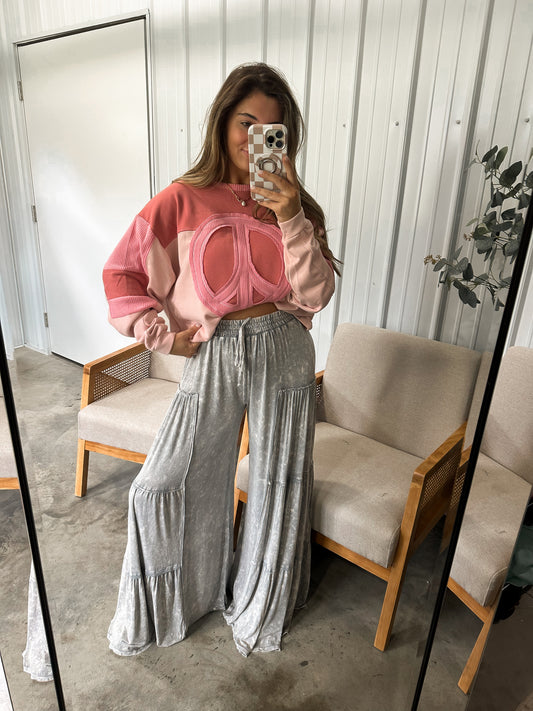 Sold outBoho Peachy Pink Peace Sign Pullover