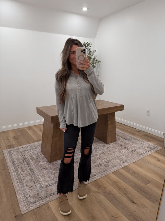 Cozy Waffle Exposed Seam Henley DOORBUSTER