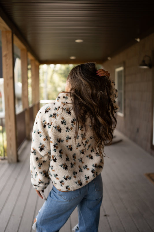 Floral Striped Patchwork Pullover- Navy/Hunter Green
