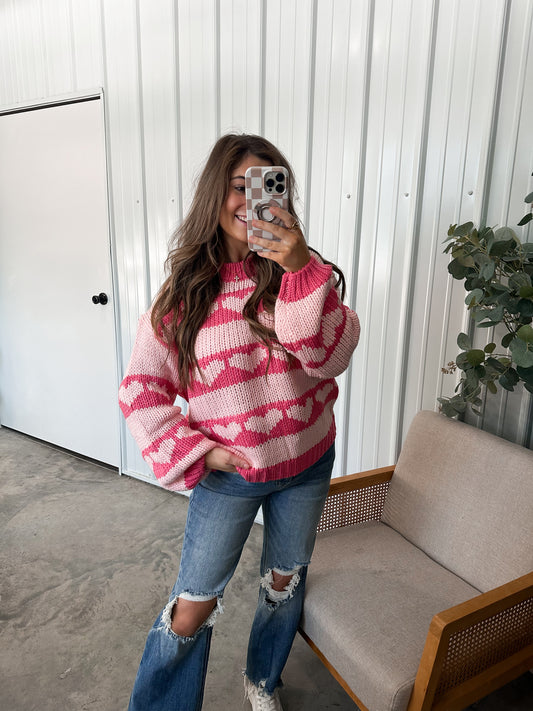 Heart Print Stripped Sweater