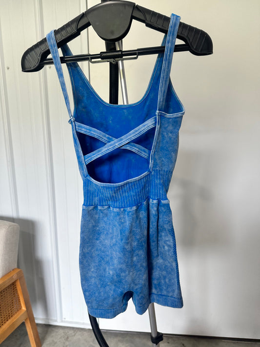 Hot Shot Washed Romper - Blue ** LIGHTLY LOVED**