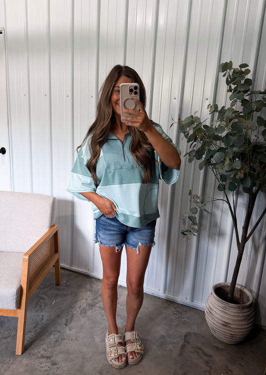 Jayden Colorblock Pullover- Teal