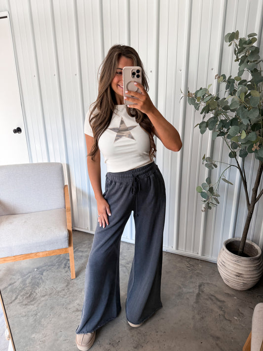 Mineral Washed Wide Leg Casual Comfy Pants - 3 Colors