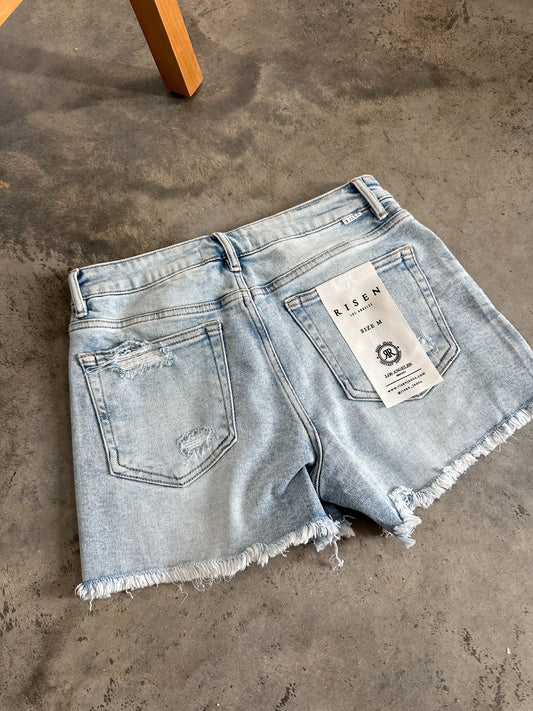 Comfort stretch High Rise Denim Shorts- Light wash