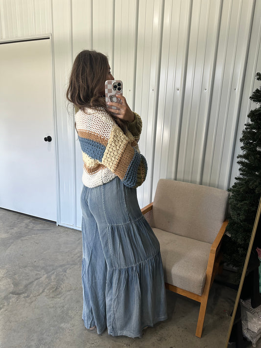 Montana Tiered Wide Leg Pants- Washed Denim