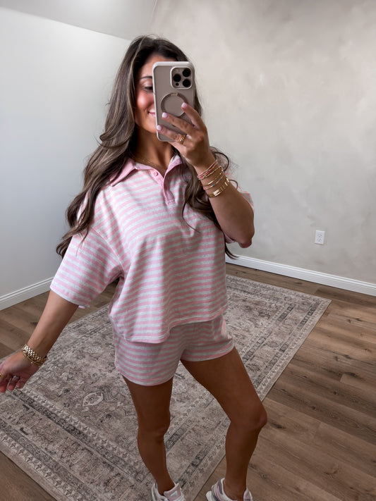 Spring Breeze Striped Shorts Set - pink/grey