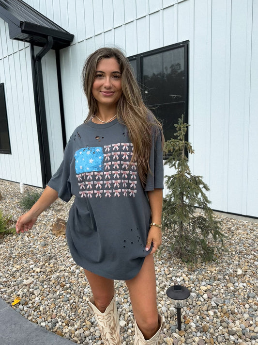 Coquette American Flag Distressed Tee- Slate RESTOCK
