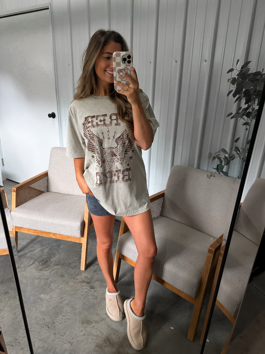 Free Bird Mocha Boyfriend Fit Graphic Tee