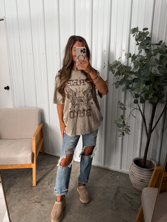 Sold outWashed Earth Rock n Roll Tee- Pink