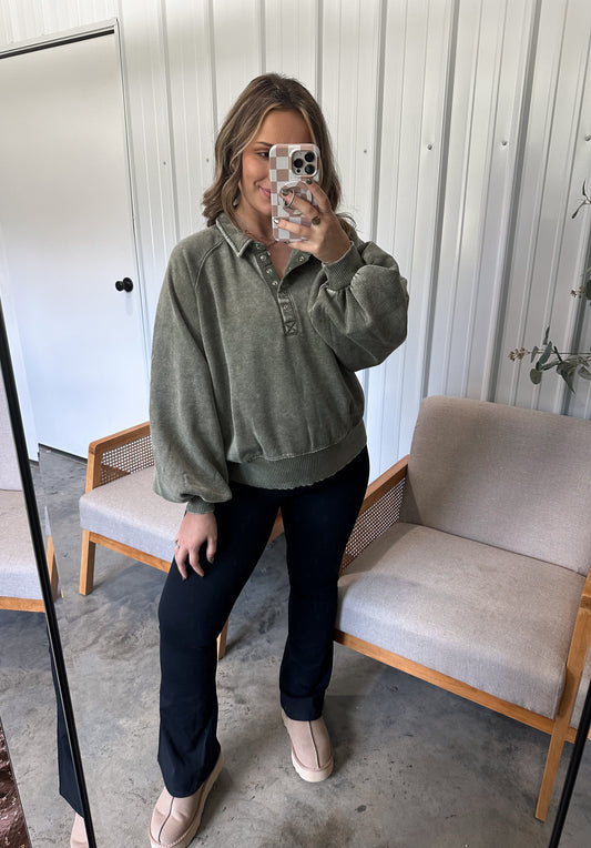 Sold outMegan Button Up Pullover - Olive