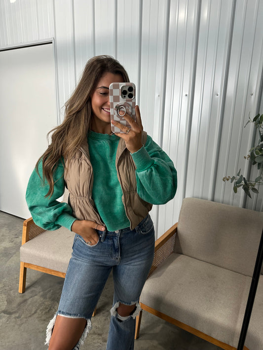 Reagen Raw Hem Pullover - Kelly Green