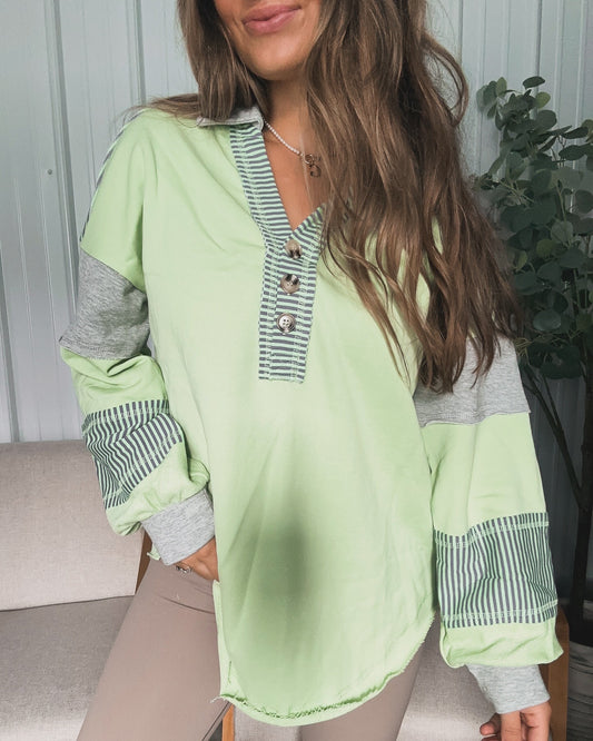 Megan Button Up Pullover - Kelly Green