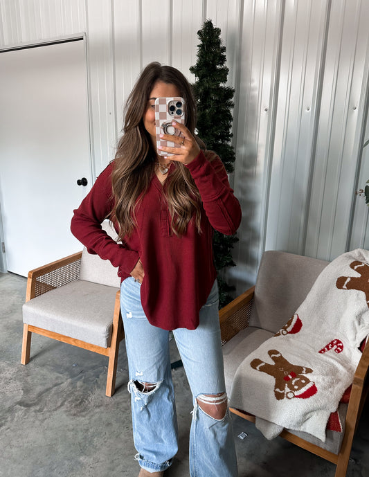 Gracie Brushed Hacci pullover- Dark Red