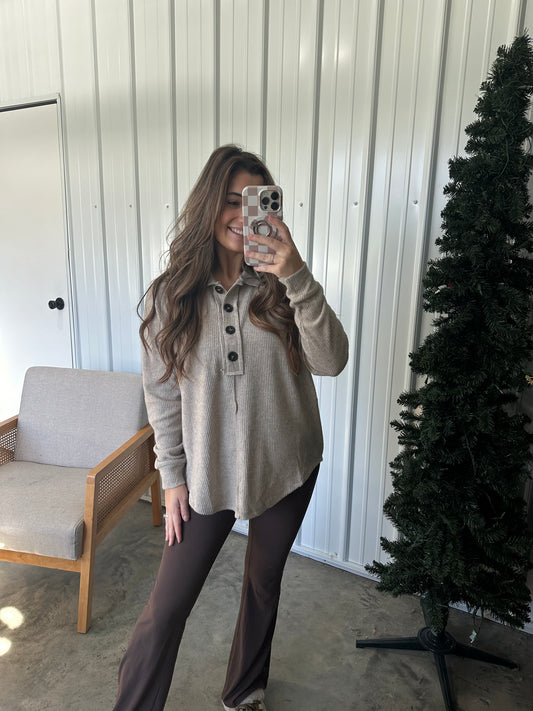 Sold outHenry Neck Ribbed Sweater- Oatmeal