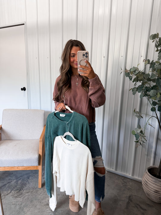 Whitney Washed Waffle Pullover- Restock!