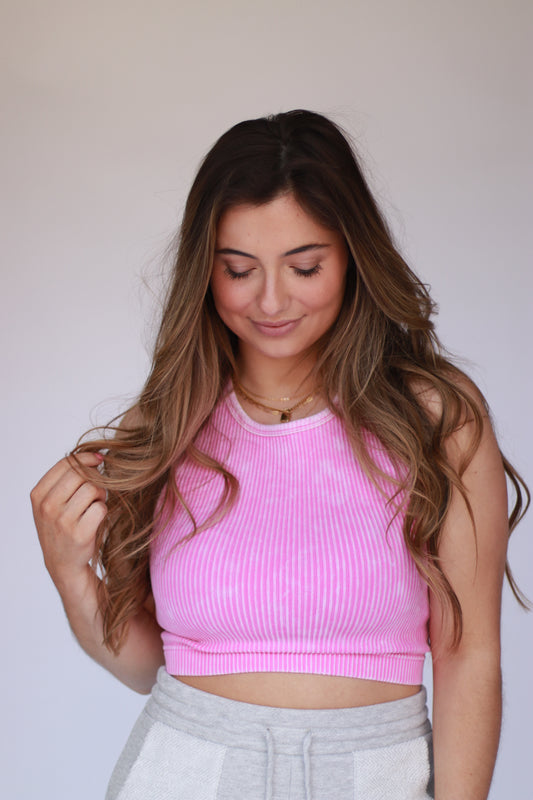Rachel Ribbed Seamless Tank (Lavender + Pink)