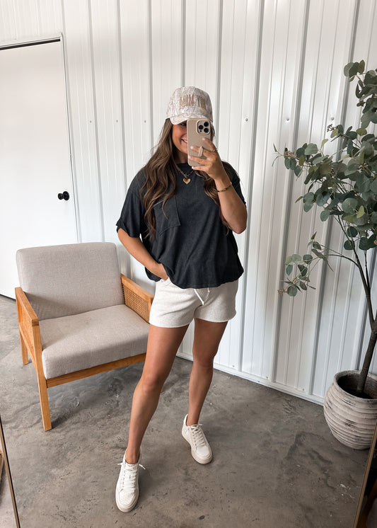 Raw Hem Lounge Shorts - Heather Vanilla restock*