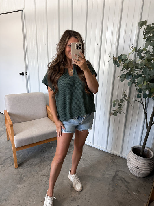Sold outHigh Rise Denim Shorts- Dark Wash