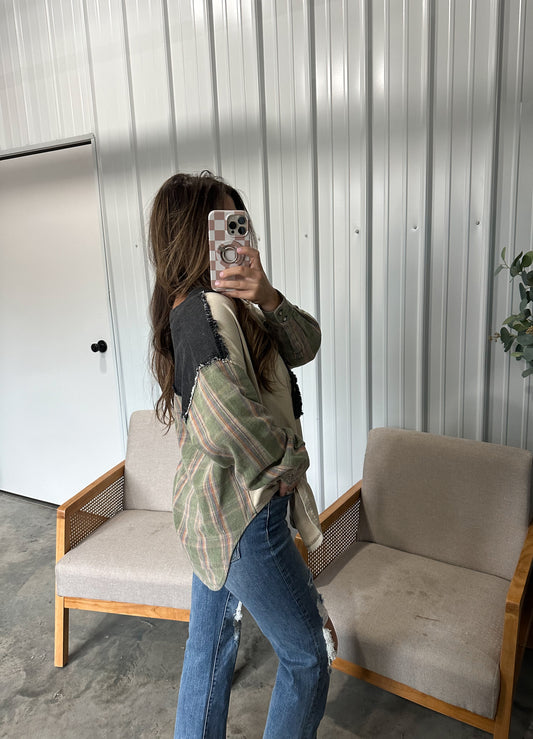 Teddy Denim Mixed Media Pullover restock!
