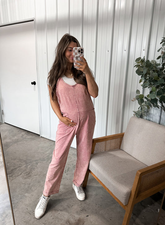 Staple mineral wash jumpsuit - light rose