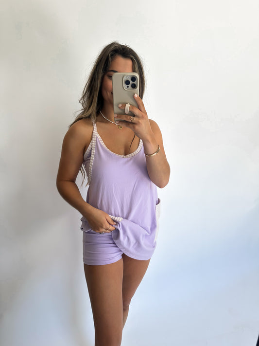 Sold outIn my Feelings Romper- Lavender
