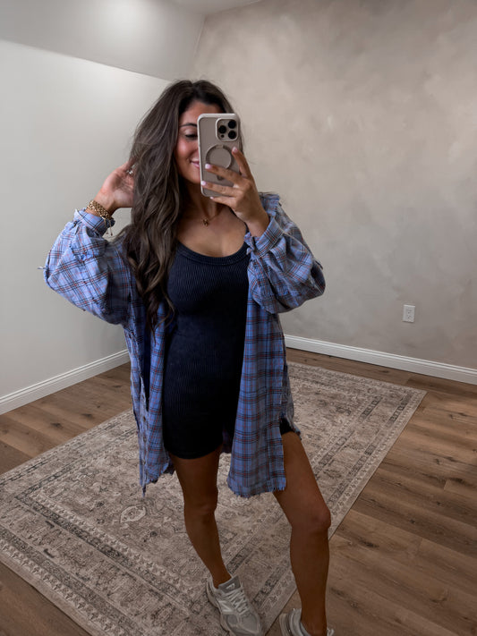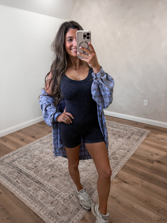 Stone Washed Ribbed Romper- ash black