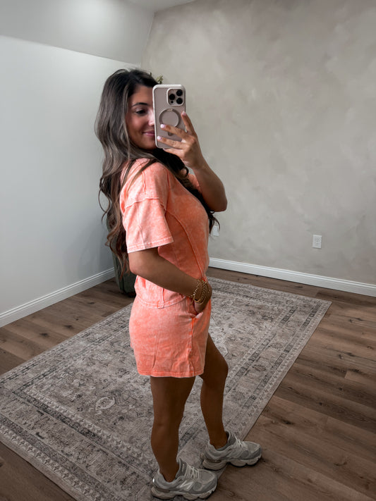 Halo Snow Washed Short Set - orange