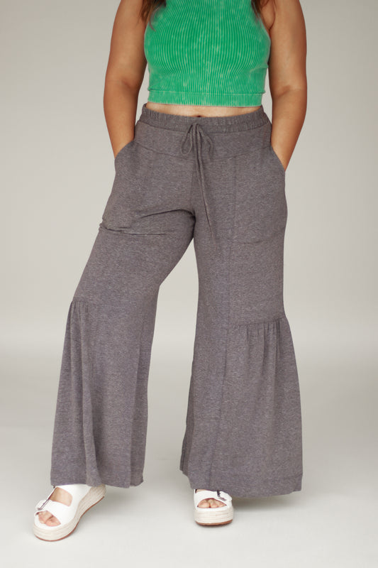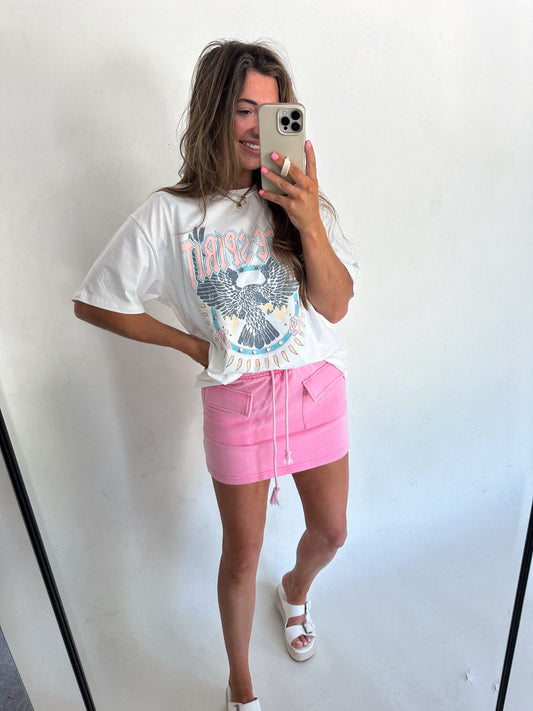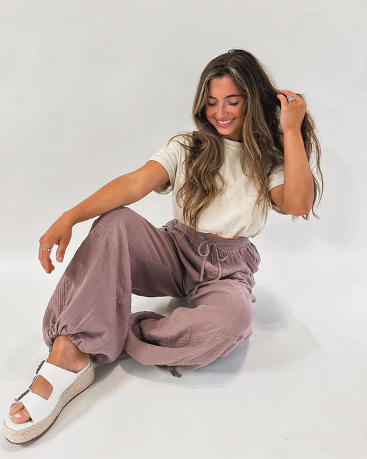 Amanda Bubble Hem Cropped Tee- Taupe/Pink