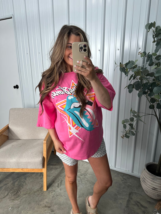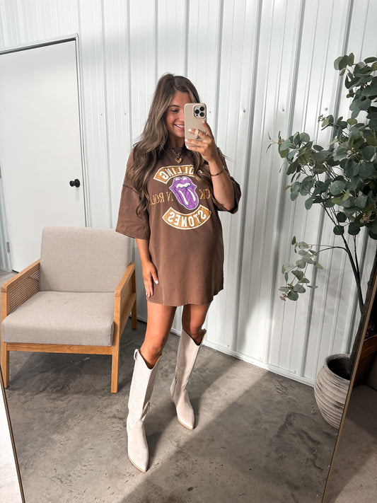 Licensed Rolling Stones Graphic Print Dress- Brown